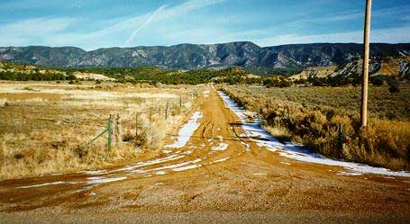 Road 96 North, branching off from Road 44 West approximately 5 miles after Cuba, NM, and leading to La Jara, NM. In the background one can see the Jemez Mountains that to Cimrman must have looked like his beloved Jizera Mountains in northern Bohemia.